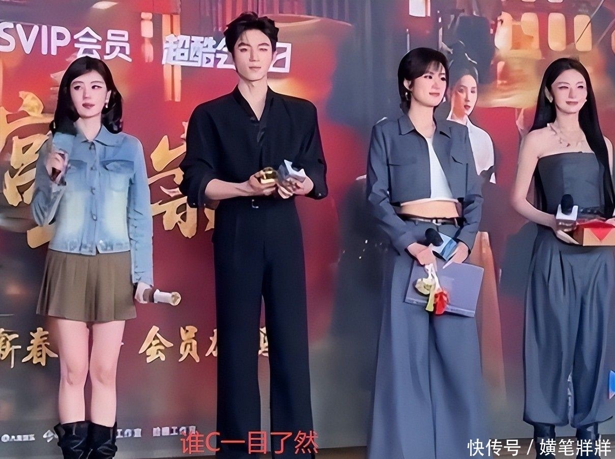 当其余三人皆着简约休闲装束时,白鹿却选择短款蓬裙搭配少女感发卡主动抢占视觉中心,此举非但未能强化个人标识,反而在整体语境中突显出风格错位感。
