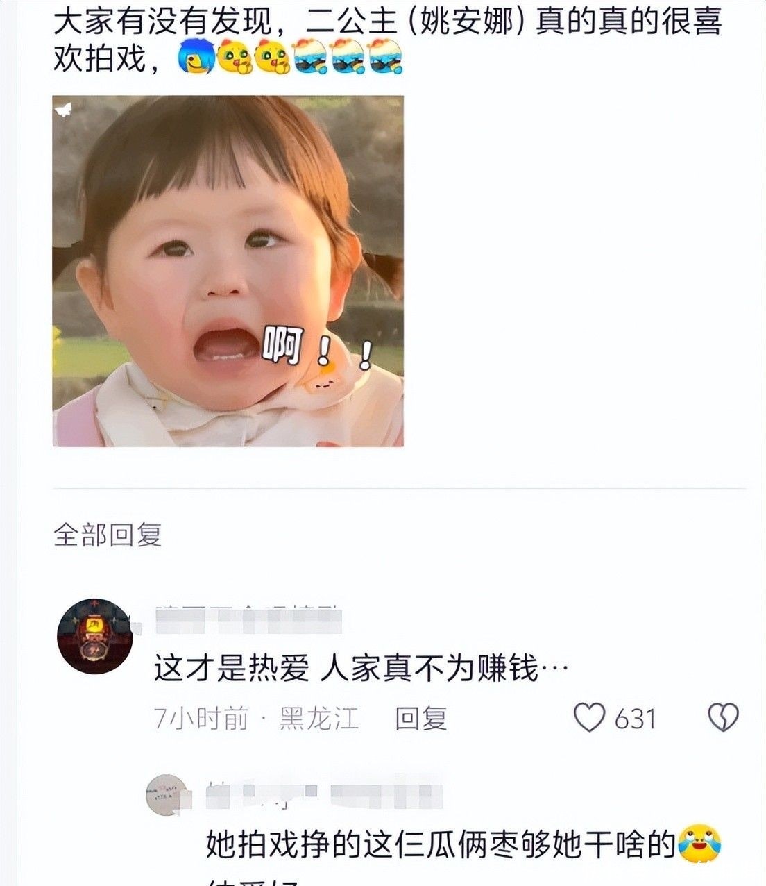 不少网友留言感叹:“看得出来,二公主是真的把演戏当事业在经营,这种踏实劲儿太稀缺了。”
